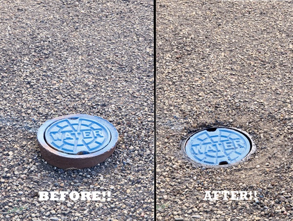 The replacement sleeve stays level with the pavement surface, preventing future settling and repeat maintenance.